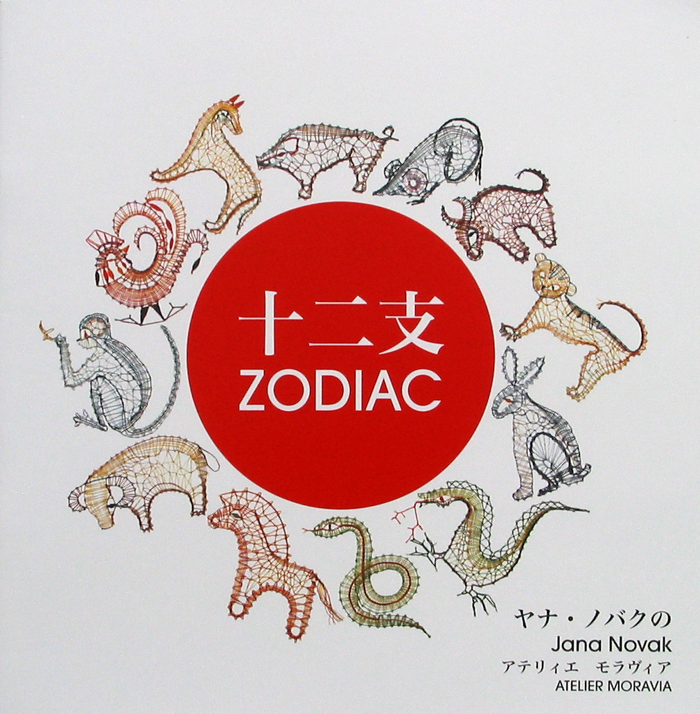 Klöppelmuster für 12 kleine Tiere: Maus, Ochse, Tiger, Kaninchen, Drachen, Schlange, Pferd, Schaf, Affe, Hahn, Hund, Wildschwein